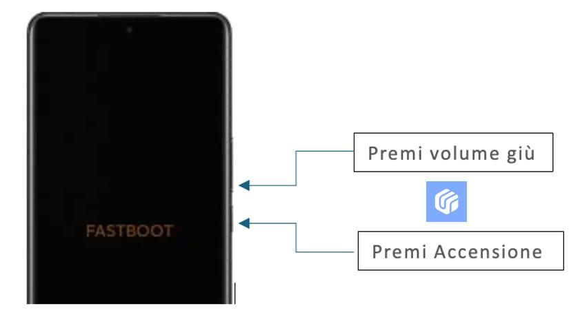 - 3. Quando viene visualizzato la scritta "Fastboot" a centro schermo, rilasciare i pulsanti.